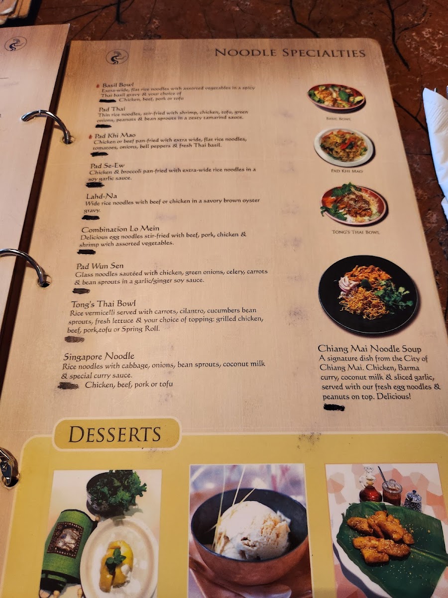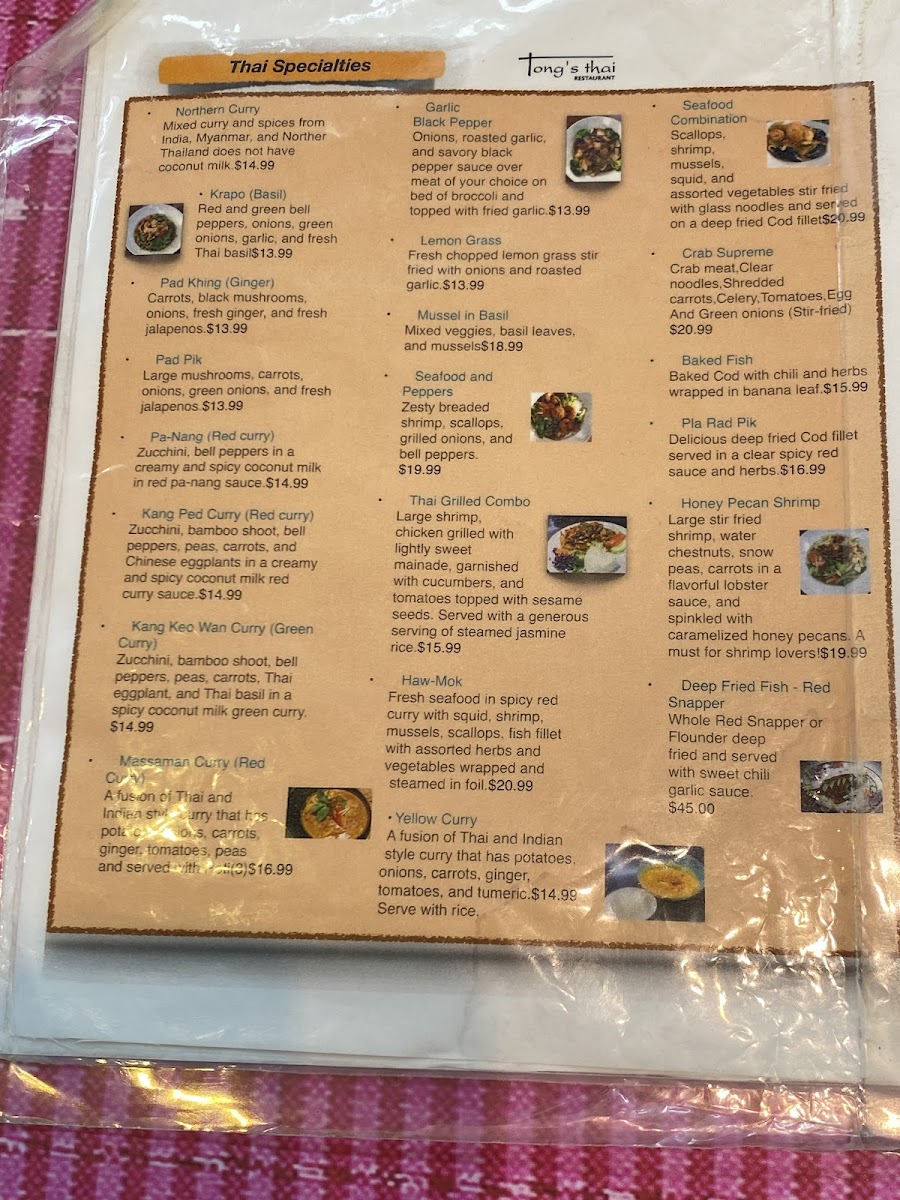 Each dish is a testament to the rich tastes and textures of Thai cuisine. Combine these dishes with their renowned Thai tea for a complete dining experience. The attentive service and welcoming atmosphere make Tong's Thai Restaurant a must-visit for anyone craving authentic Thai food. Come indulge yourself today!